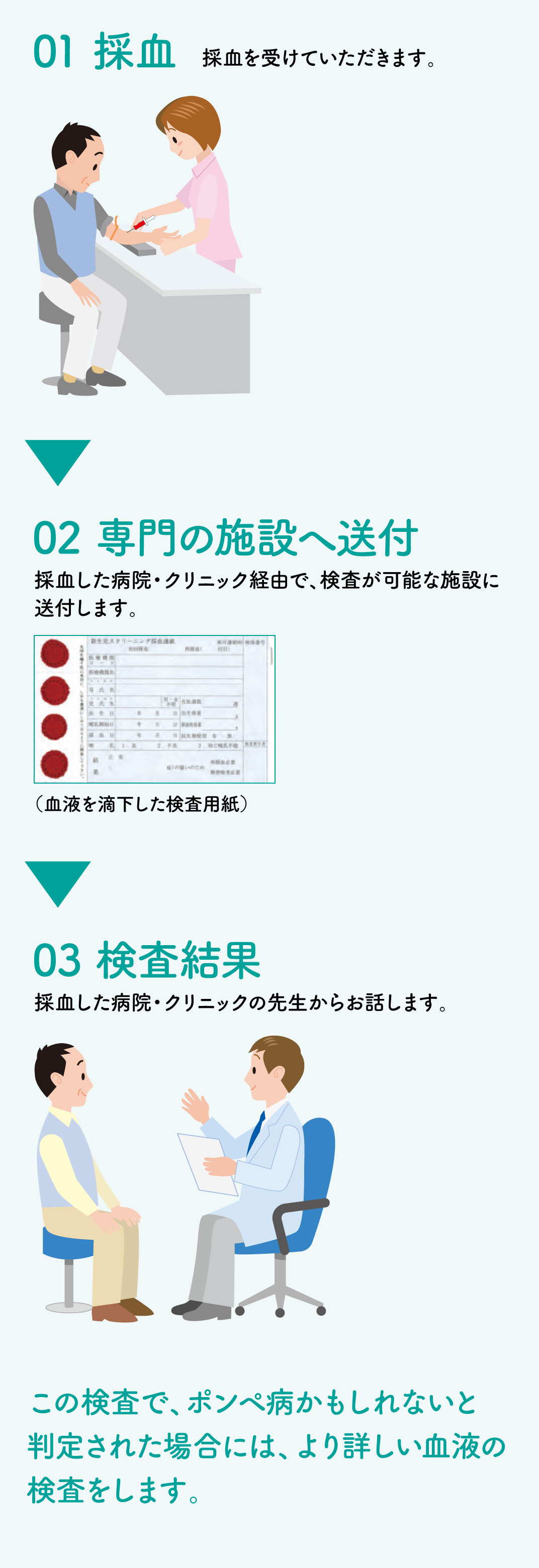 ポンペ病の初期検査は、「乾燥ろ紙血検査」といいます。